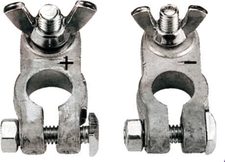 Sett med pluss og minus. Leveres 8 mm bolt på - pol og 10 mm bolt på + pol. Vingemutter for enkel påmontering av kabel. .. Mer info