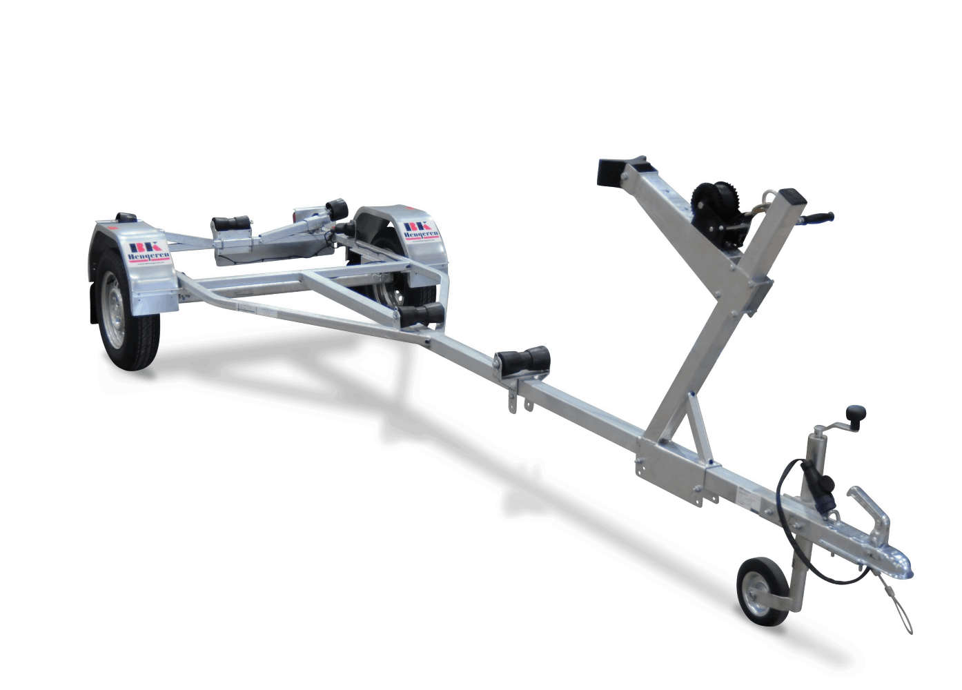 Rimelig båthenger med manuelt justerbare sidestøtter. Helsveist og varmgalvanisert ramme. Kraftige stålskjermer. Henger passer også mange typer små RIB.