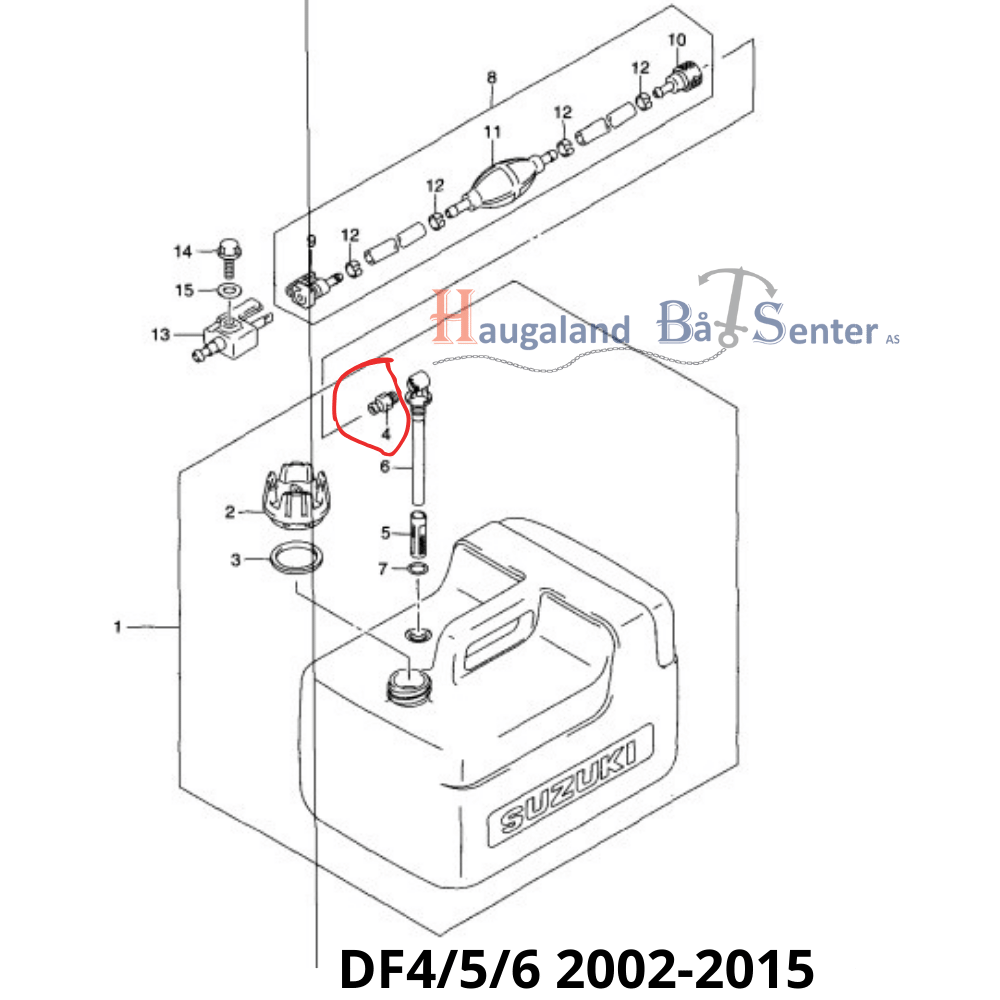 Kategorier: Reparasjonsdeler DF4 /5 /6 2002-2015, Reparasjonsdeler DF4/ 5/ 6 16-, Bensinkopling og Slanger, Suzuki Reparasjons deler