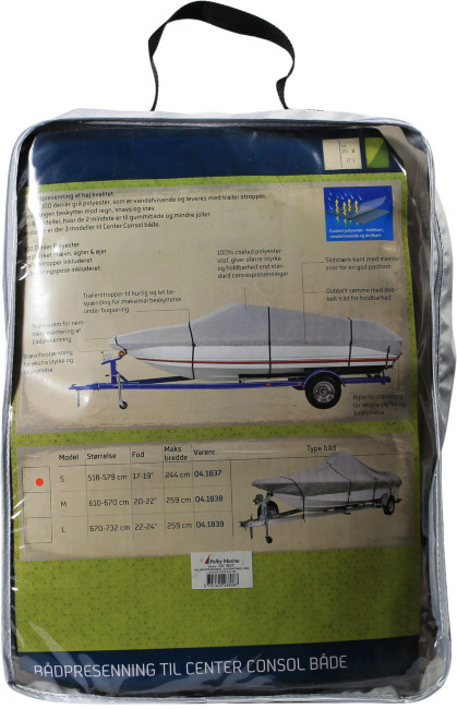 Formsydd båtpresenning av høy kvalitet for konsollbåt. Formsydd båtpresenning av høy kvalitet som beskytter mot regn, sol og smuss. Produsert i vannavvisende grå 300 denier polyester slik at den er robust og tåler nordisk klima. Elastiske stropper er sydd inn for å gi best mulig passform. Finnes
