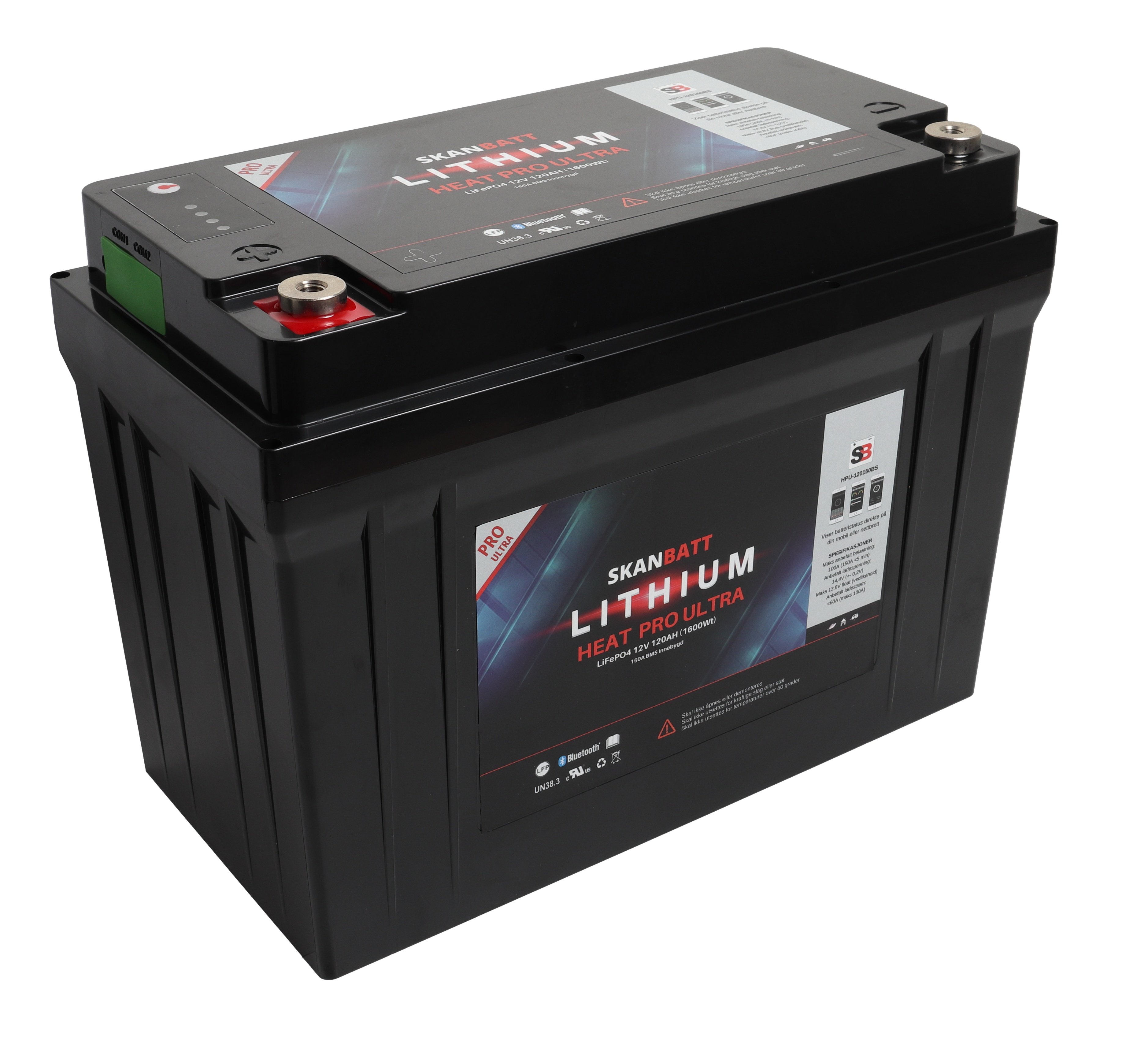 SKANBATT Lithium HEAT PRO "Ultra" 12V 120AH - CAN Bus - 300A (3s) - 8 års garant i ULTRA - Et av våre beste lithiumbatterier ULTRA serien fra Skanbatt er et av de aller beste lithiumbatteriene på markedet i dag. Vi har valgt de