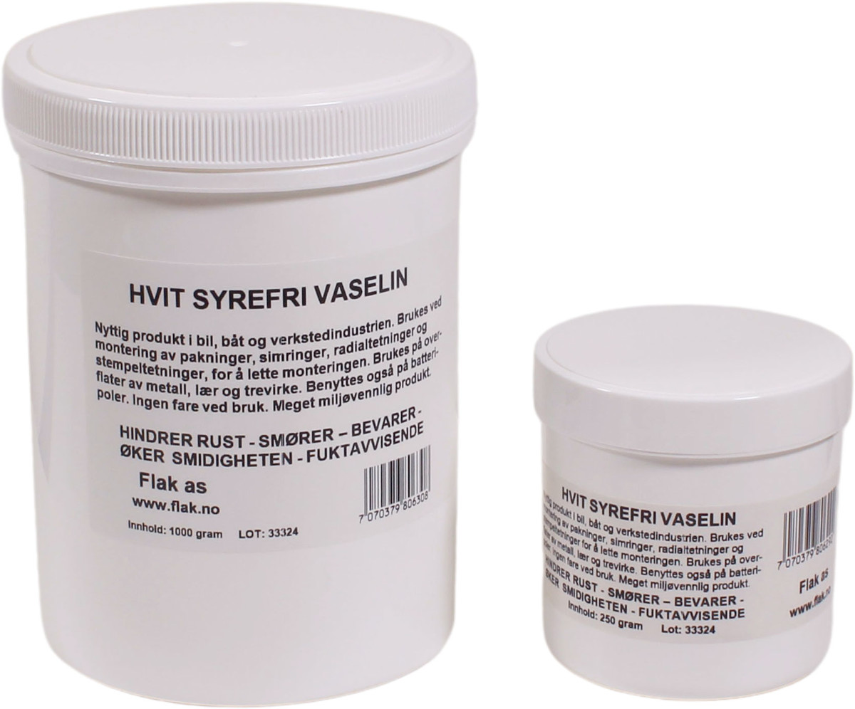 Vaselin er multikunstneren som passer like godt på verkstedet, som i hjemmet. Det smører, tetter, vedlikeholder og hindrer både rust og irring. Hvit syrefri vaselin til bruk i båt, bil og i hjemmet. Vaselin er praktisk til mange formål hvor du trenger smøring. Det er supert til