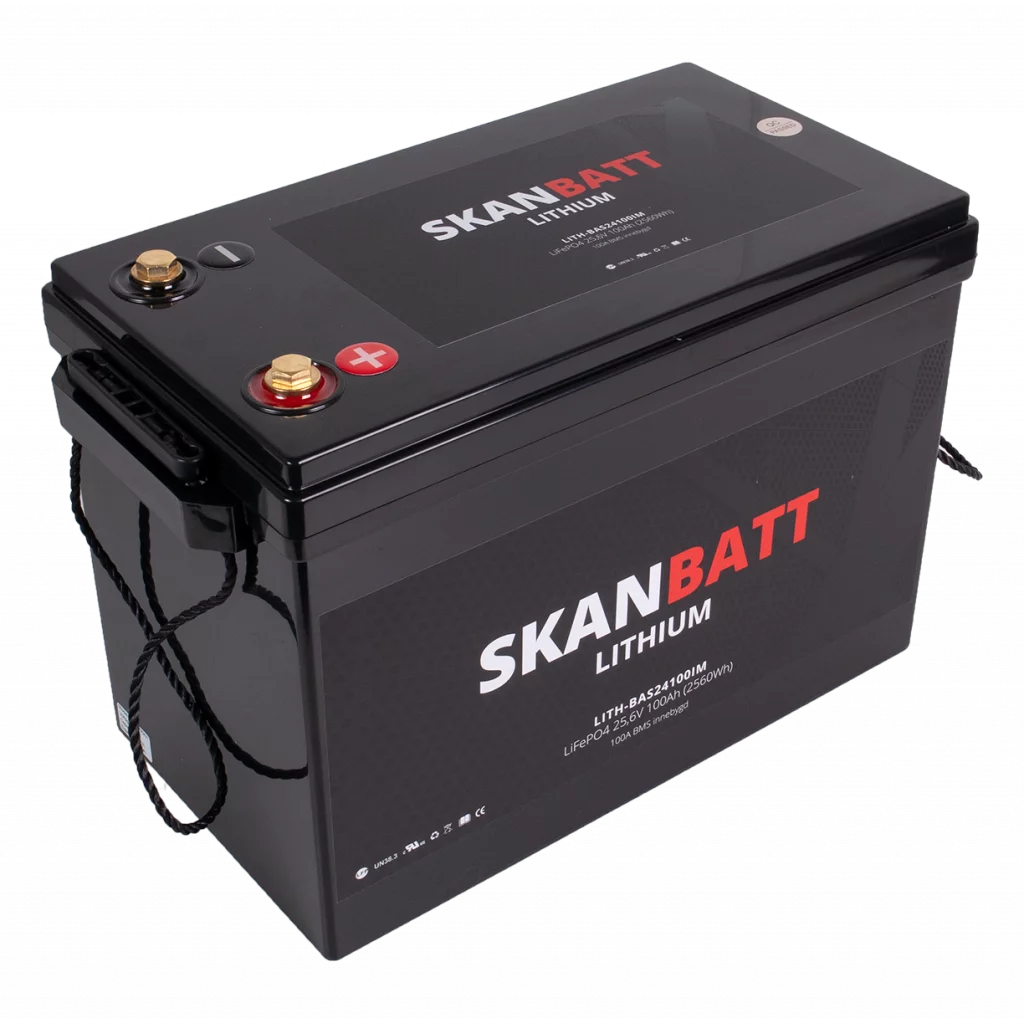 SKANBATT Base Lithium - 24V 100Ah 100A BMS - 330x175x220mm - 3 Års garanti